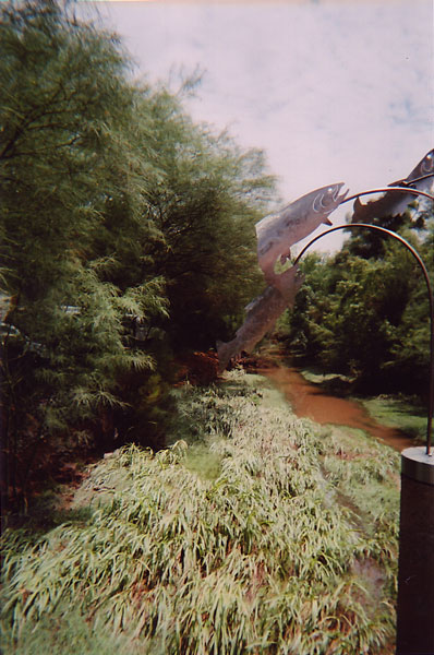 "Sand trout in a wash" is a very interesting picture. Everything about the trees and grasses suggest flowing water, yet there’s no water. Really nice.